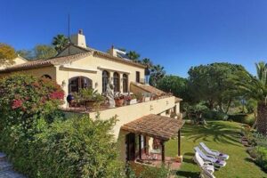 Ubicada en una amplia parcela doble de 2,213 m² dentro de la prestigiosa Bahía Dorada, esta elegante villa representa la esencia de la arquitectura andaluza atemporal de 486 m² construidos, diseñada por el reconocido arquitecto Aubrey David, la propiedad combina autenticidad, amplitud y una ubicación privilegiada frente al Mediterráneo. Sus diseño open-layout uniendo areas con el salon, comedor, cocina y lobby, techos con vigas de madera de 5.5 m de altura creando un ambiente acojedor.